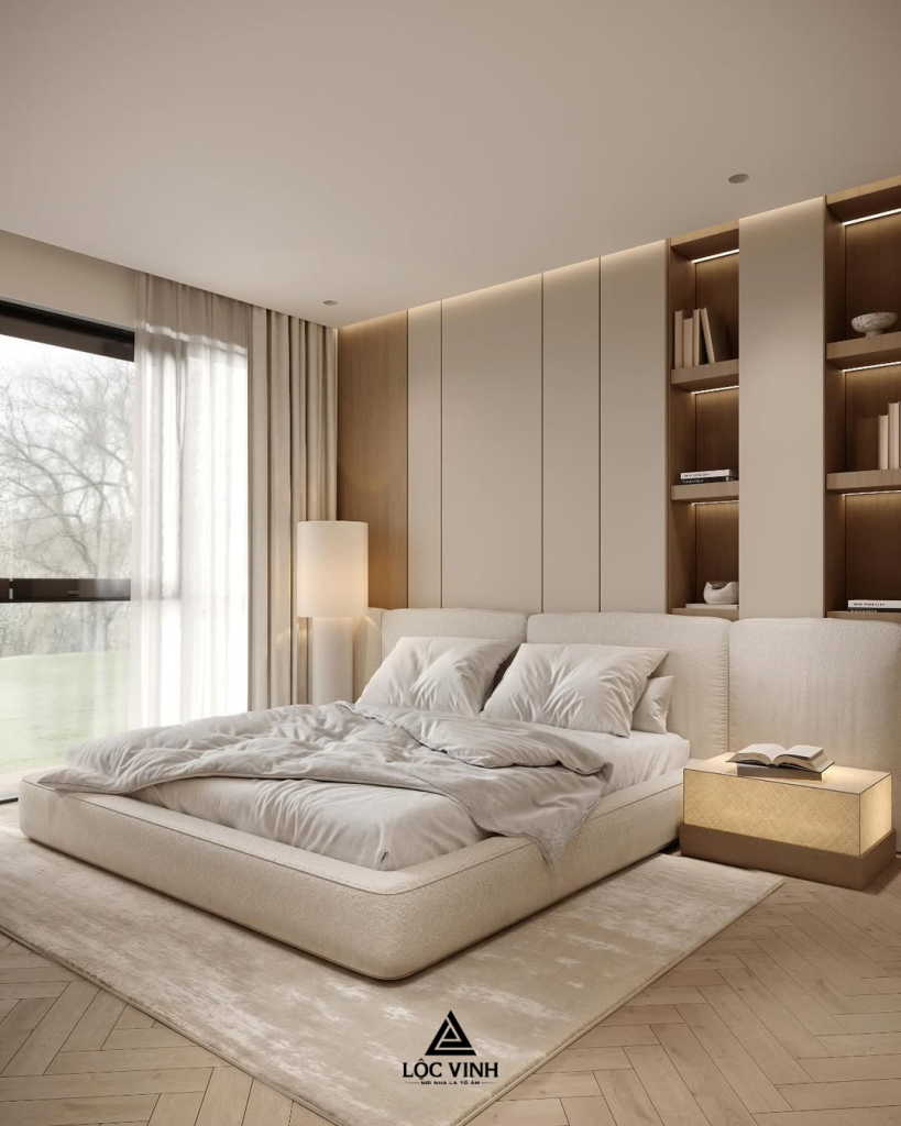 Phòng ngủ tối giản phù hợp với phòng ngủ có diện tích nhỏ đến lớn hoặc chủ nhà muốn tạo cảm giác “không gian nghỉ ngơi” thực sự.