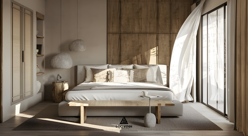 Khi áp dụng vào phòng ngủ, phong cách Wabi Sabi có thể mang lại cảm giác rất thư thái, giúp giảm stress và tạo không gian “ẩn mình” khỏi bộn bề. Cách thực hiện khi thiết kế phòng ngủ như: